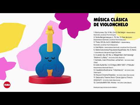 Descubre el encanto de las suaves notas del violonchelo con esta recopilación de 12 piezas icónicas, pensada para estimular el lenguaje y la sensibilidad musical de niños y niñas. Composiciones atemporales de maestros como Bach, Chopin, Debussy, Brahms y Morricone resuenan en una atmósfera tranquila y envolvente, creando el ambiente ideal para favorecer la relajación y la creatividad de los más pequeños y pequeñas.